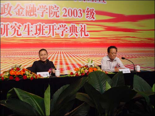 主持人:“做大做强中国保险业前沿专题系列讲座暨中国人民大学财政金融学院2003年金融保险专业研究生班开学典礼”现在开始。在这金秋时刻,我们今天的盛会来了很多嘉宾。首先,请允许我向各位介绍在主席台上就坐的嘉宾:国务院发展研究中心原副主任邓鸿勋先生;中国保险监督管理委员会副主席吴小平先生;中国人民大学党委书记程天权先生;中国保险学会副会长、中国人民大学兼职教授乔林先生;中国证券报社社长陈乃进先生;中国人民大学副校长冯俊先生;中国人民大学财政金融学院党委书记孙红培先生;长安保险经纪公司总裁谢松寿先生;平安保险公司北京分公司总经理朱仲群先生。